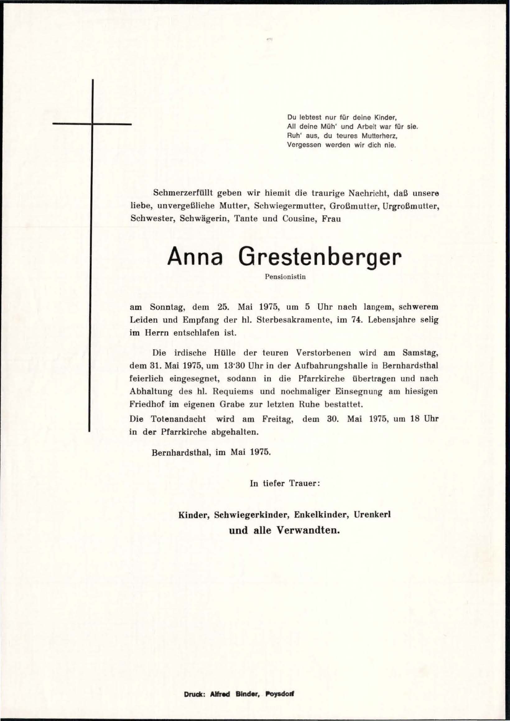 9 Grestenberger Anna Unterort 358 - ~*1901 +25.05.1975 |
