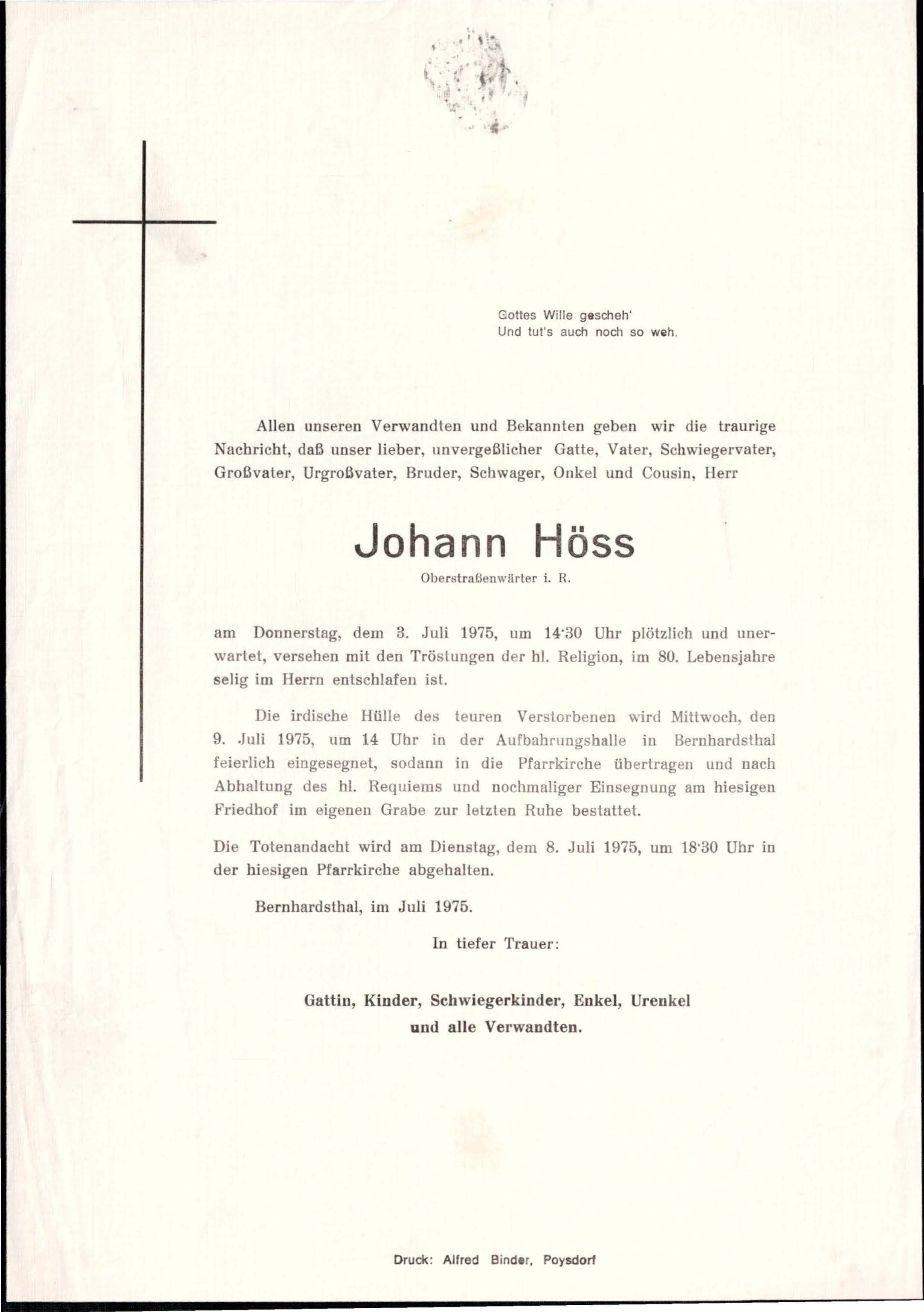 13 Höß Johann Kelllergasse 335 - ~*1896 +03.07.1975 |