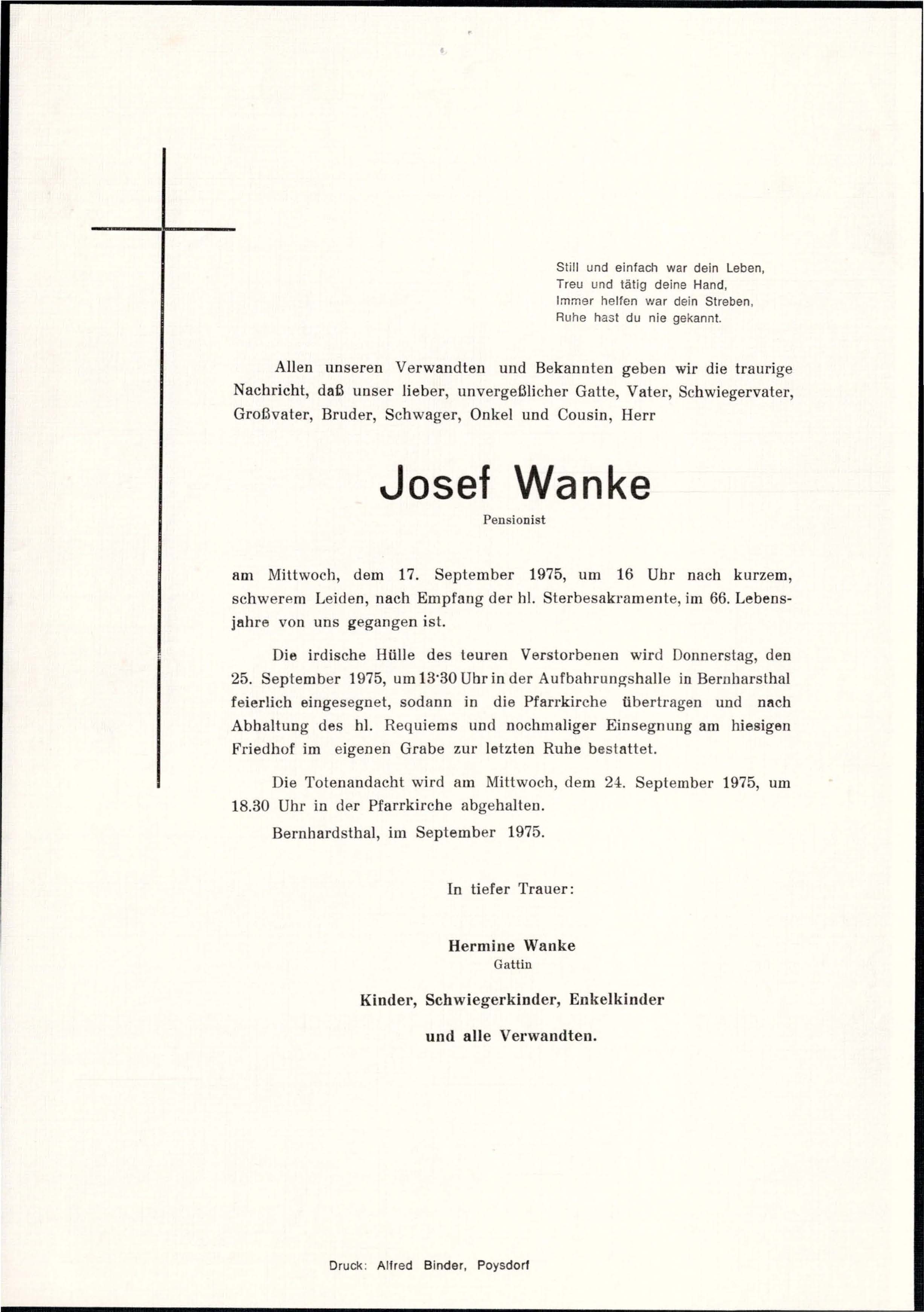 16 Wanke Josef Brunnengasse 170 - ~*1909 +17.09.1975 |