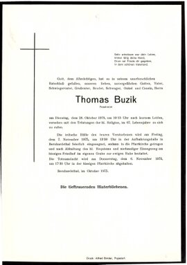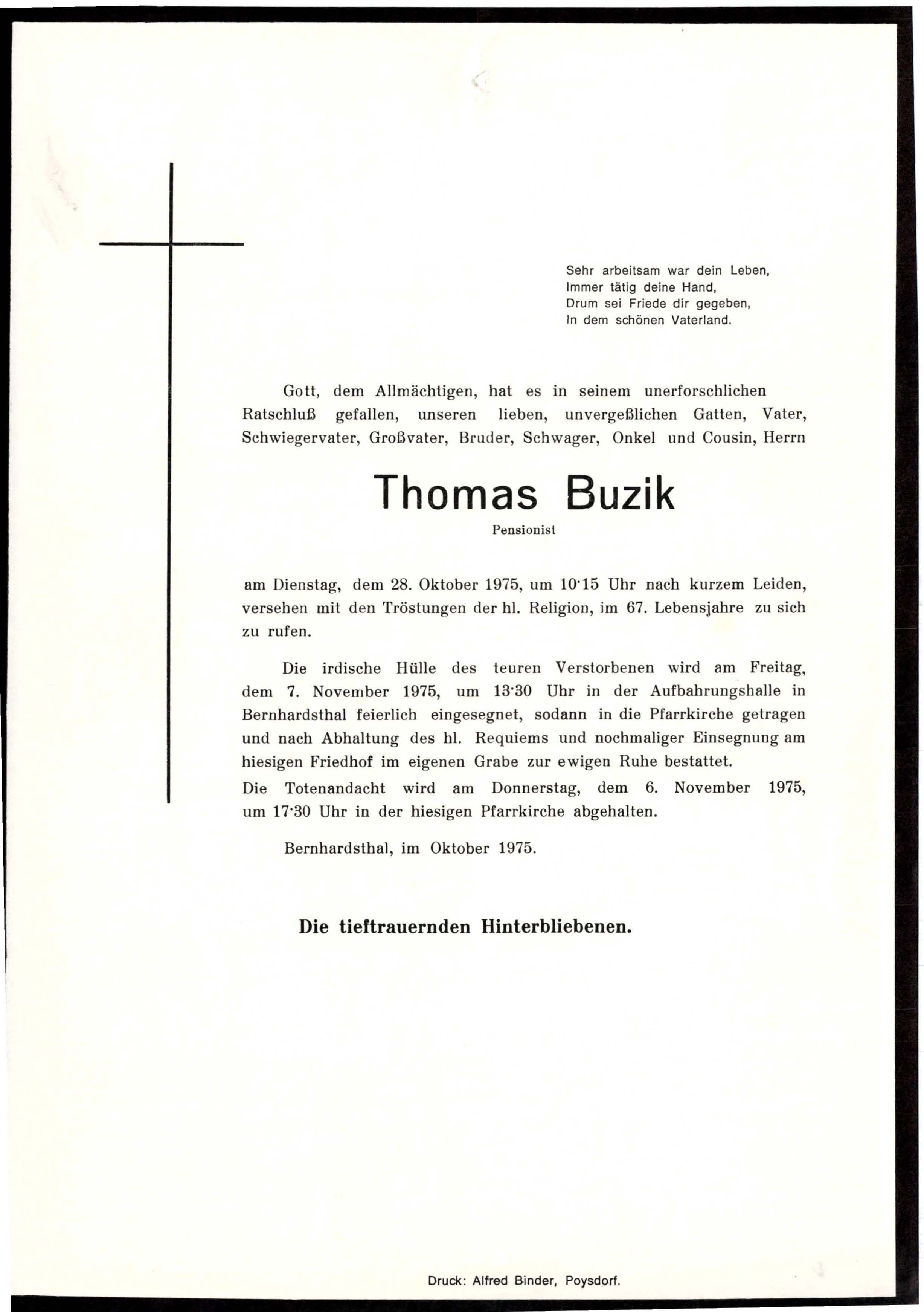 20 Buzik Thomas Bernhardsthal - ~*1908 +28.10.1975 |