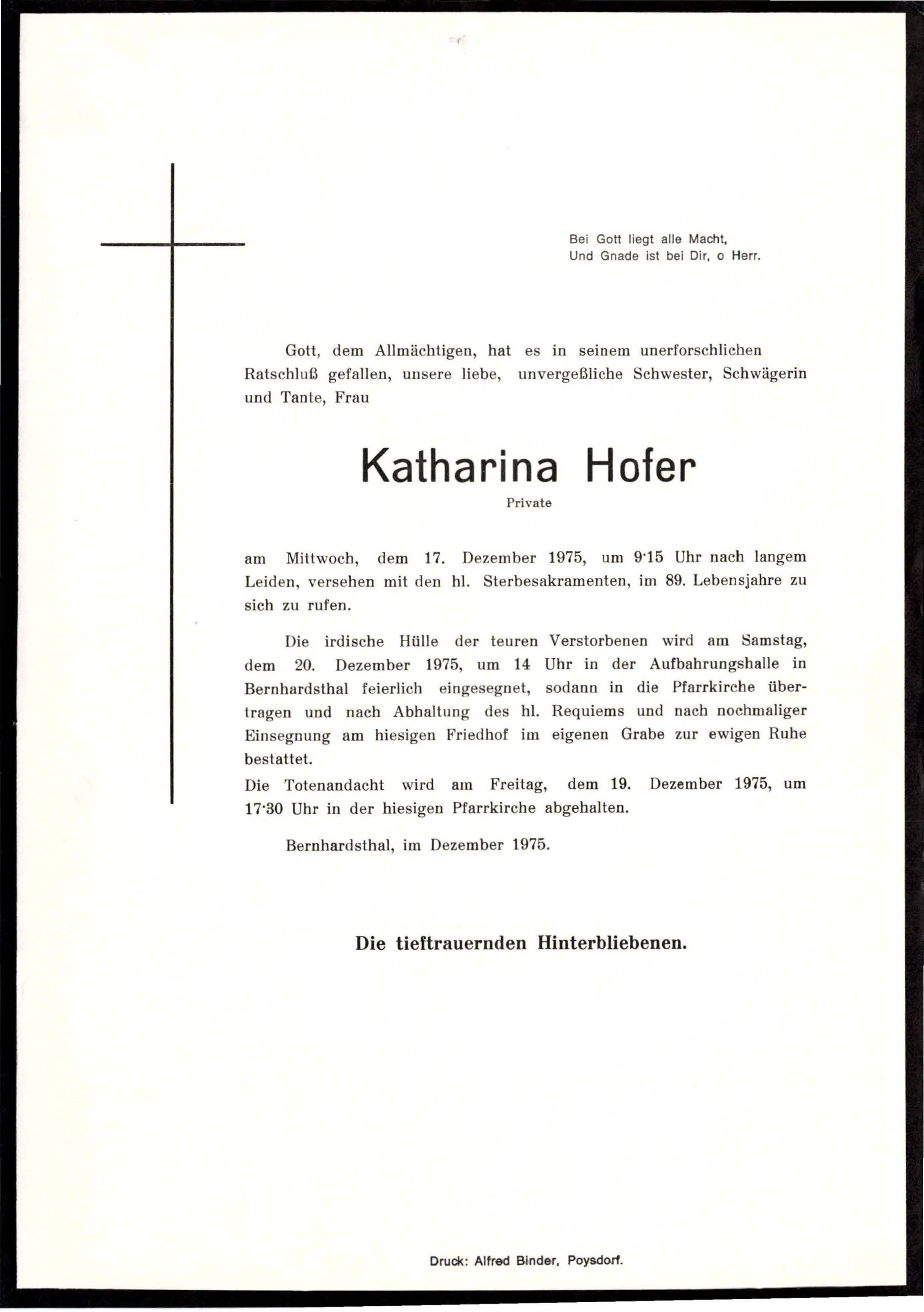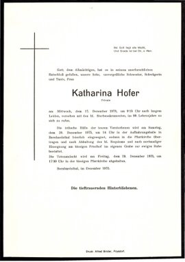 22 Hofer Katharina Josefgasse 415 - ~*1887 +17.12.1975 |