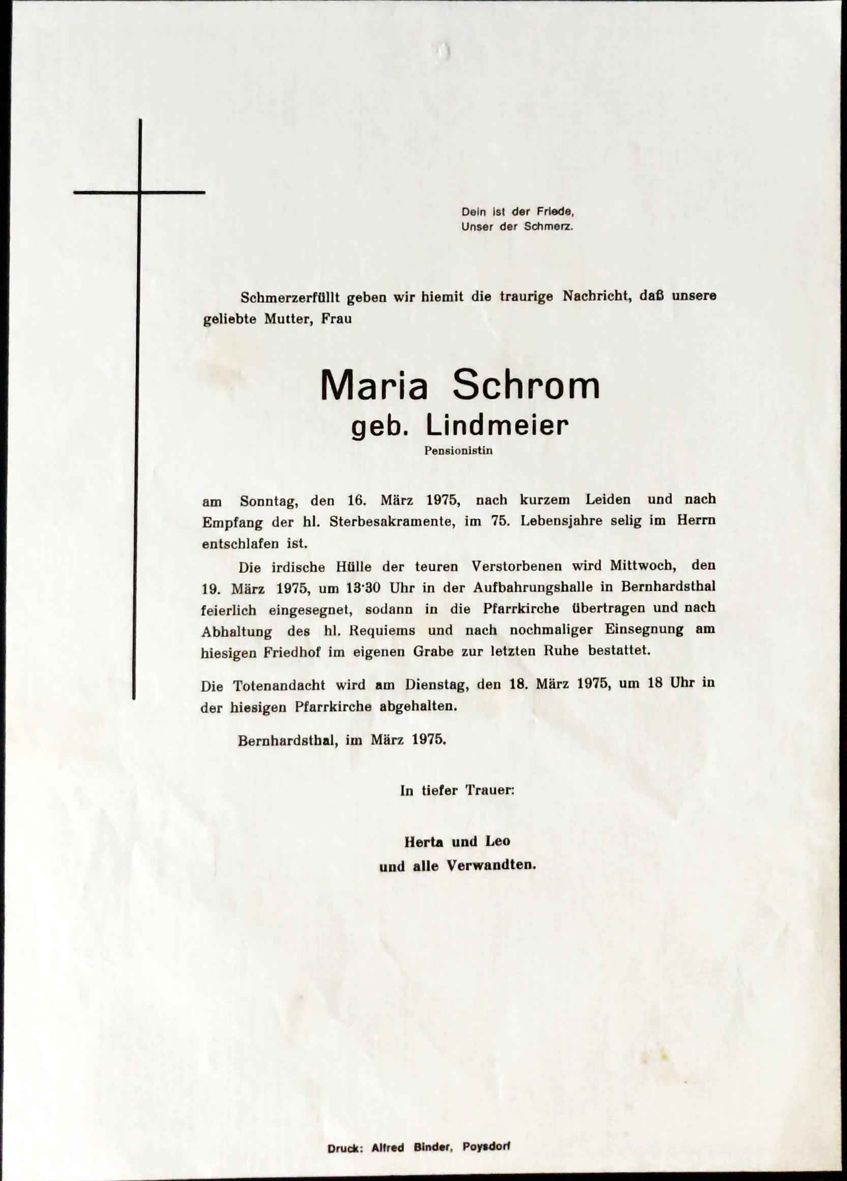 6 Schrom Maria (Lindmeier) Bahnstraße 303 - ~*1900 +16.03.1975 |