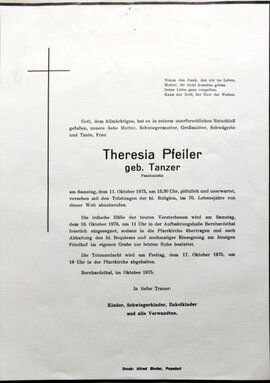 18 Pfeiler Theresia (Tanzer) Teichstraße 334 - ~*1905 +11.10.1975 |