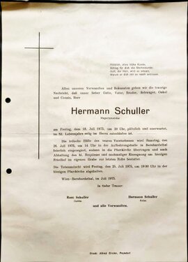 14 Schuller Hermann 1200 Wien (Bernhardsthal) - ~*1924 +18.07.1975 |