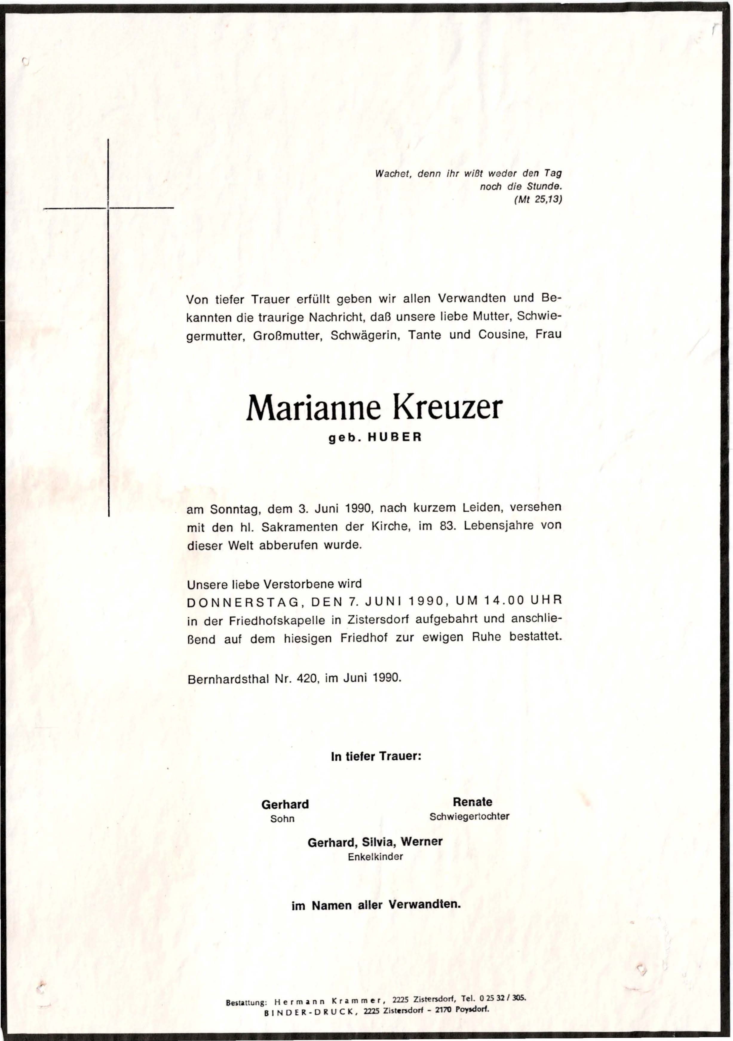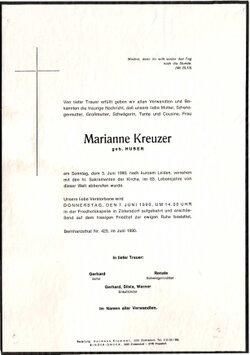 8 Kreuzer Marianne (Huber) Bernhardsthal 420 - ~*1907 +03.06.1990 |