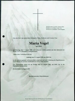 13 Vogel Maria (Böhm) Hauergasse 28 - ~*1917 +07.08.1990 |