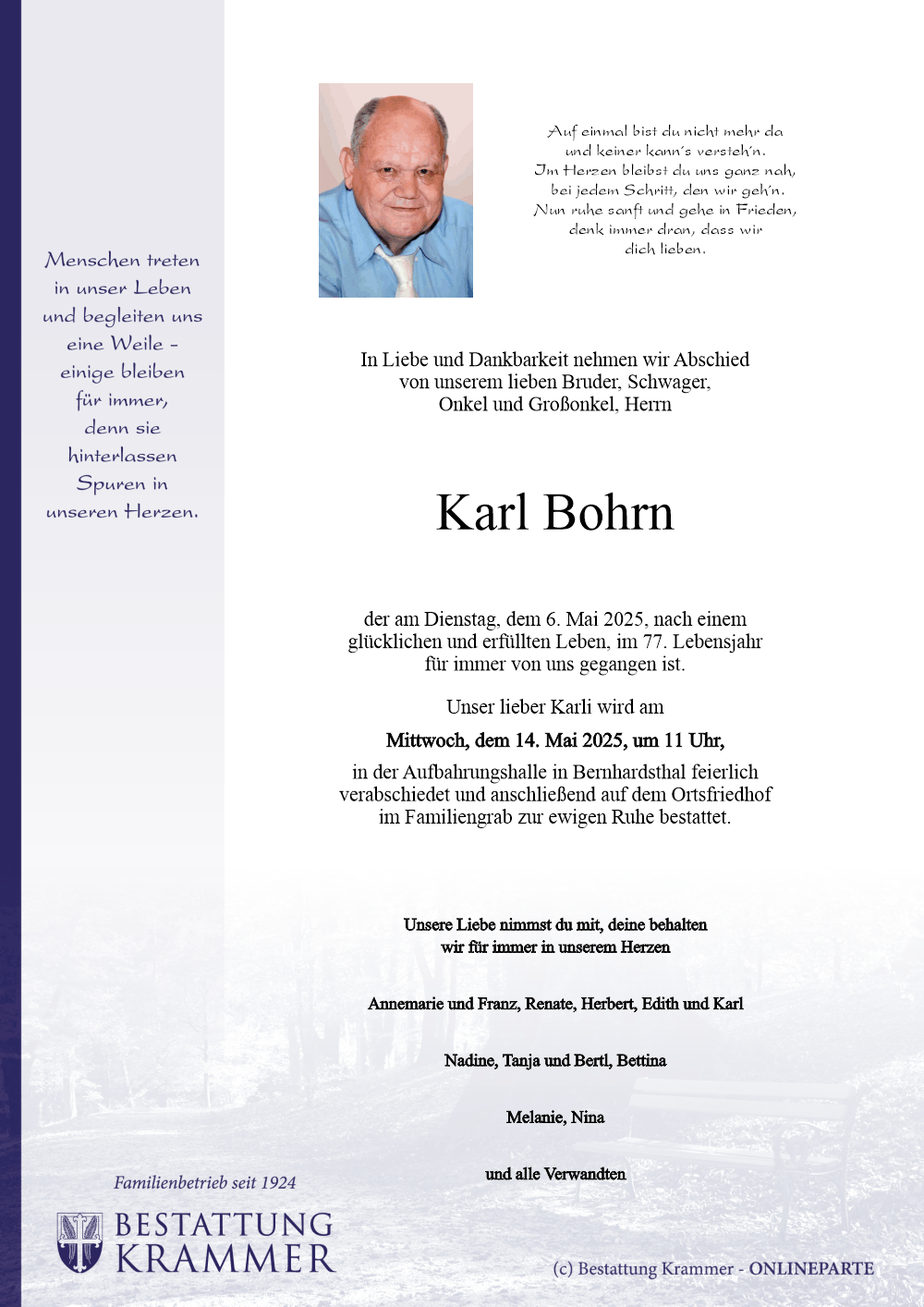14  Bohrn Karl - *03.05.1949 +06.05.2025 |
