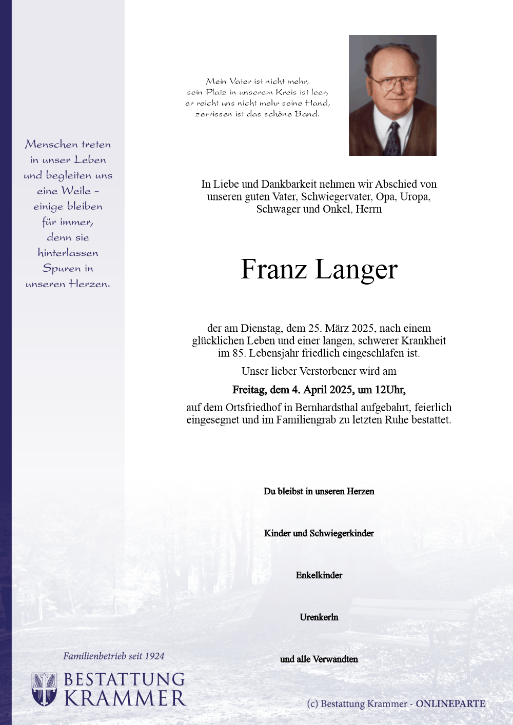 10  Langer Franz - *04.08.1940 +25.03.2025 |