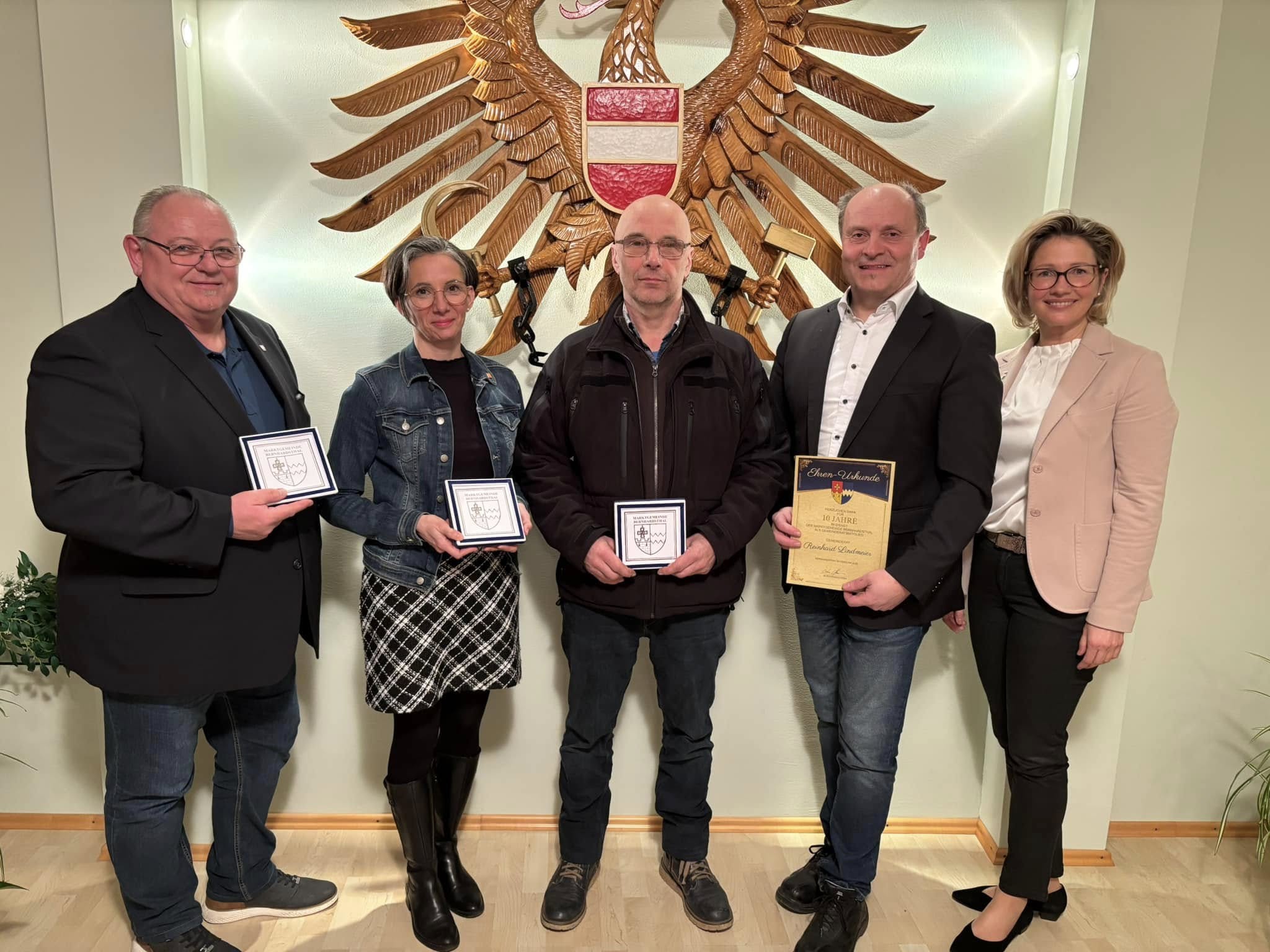 v.l.n.r. Franz Turetschek Bernhardsthal (SPÖ), Martina Birsak Bernhardsthal (ÖVP), Gerhard Unger Reintal (SPÖ), Reinhard Lindmeier Katzelsdorf (ÖVP) und Bürgermeisterin Doris Kellner (ÖVP) Bernhardsthal.