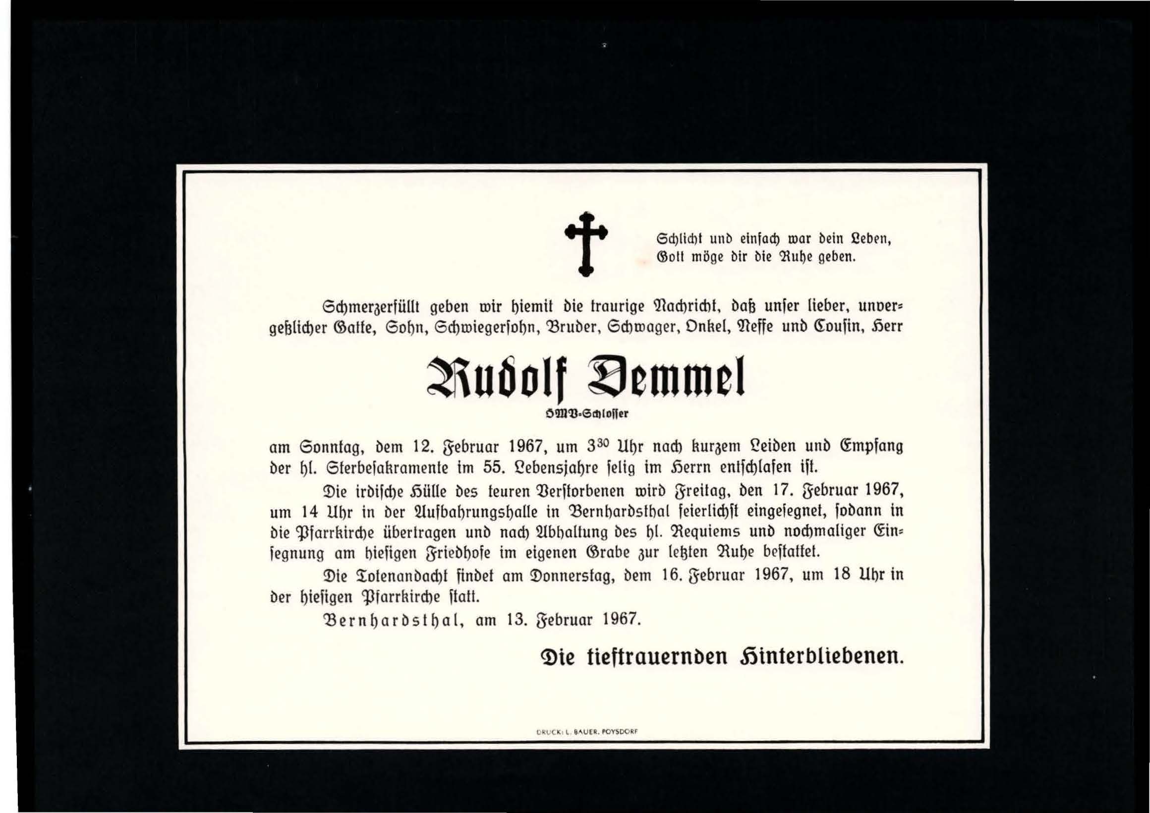 5 Demel Rudolf Mühlbergstraße 156 - ~*1912 +12.02.1967 |