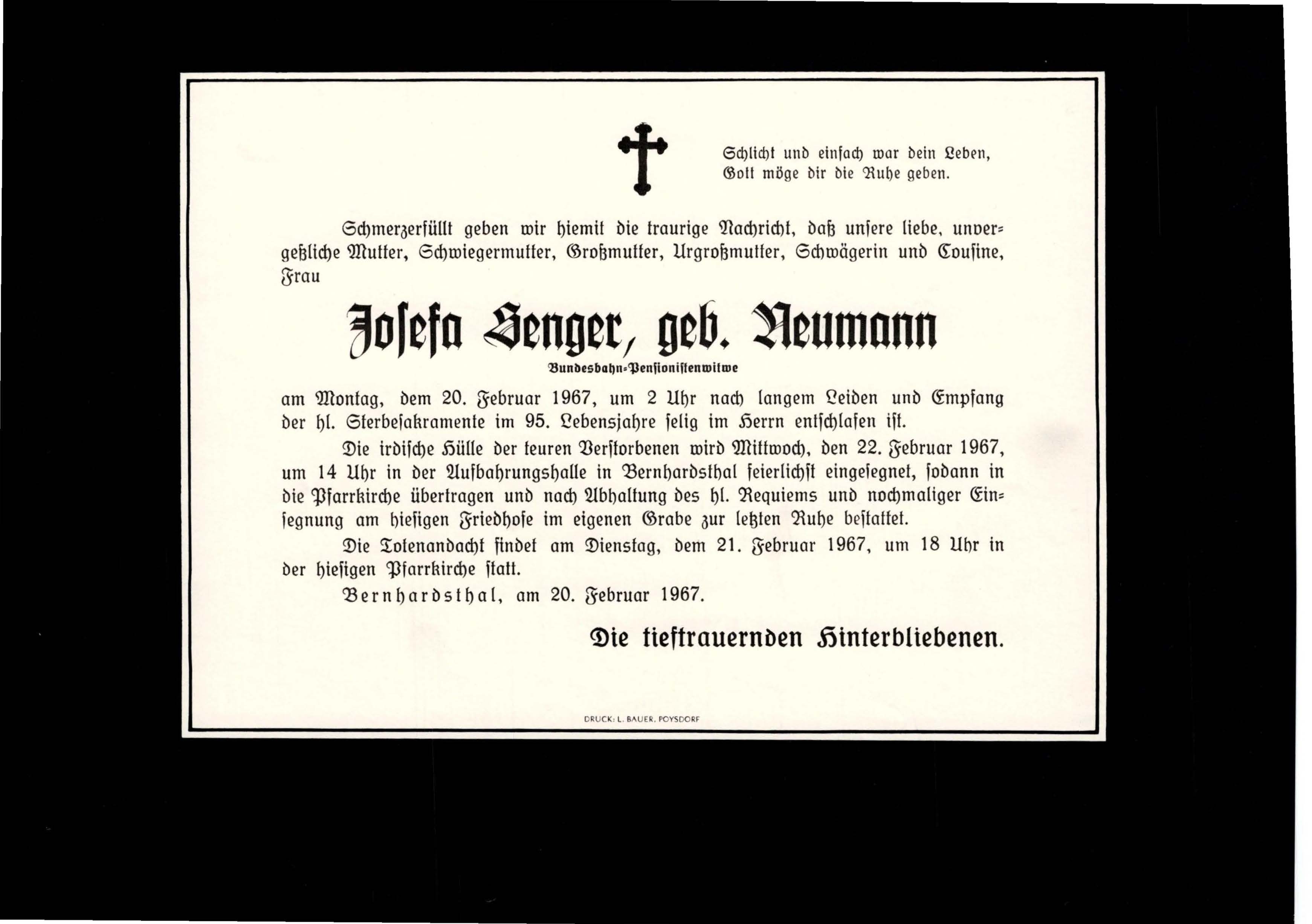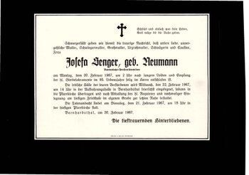 6 Senger Josefa (Neumann) Am Teichberg 222 - ~*1872 +20.02.1967 |