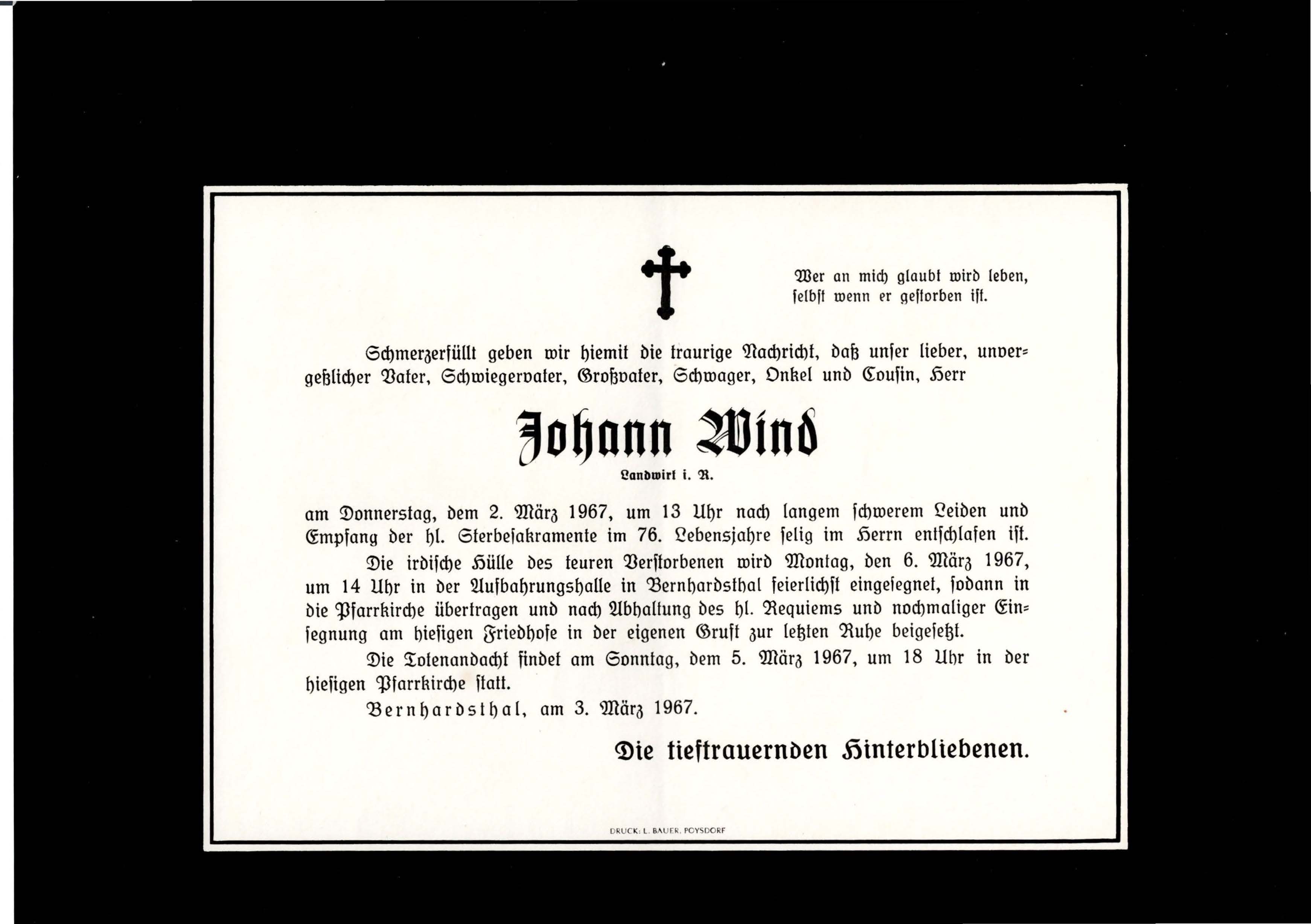 7 Wind Johann Bernhardsthal - ~*1891 +02.03.1967 |
