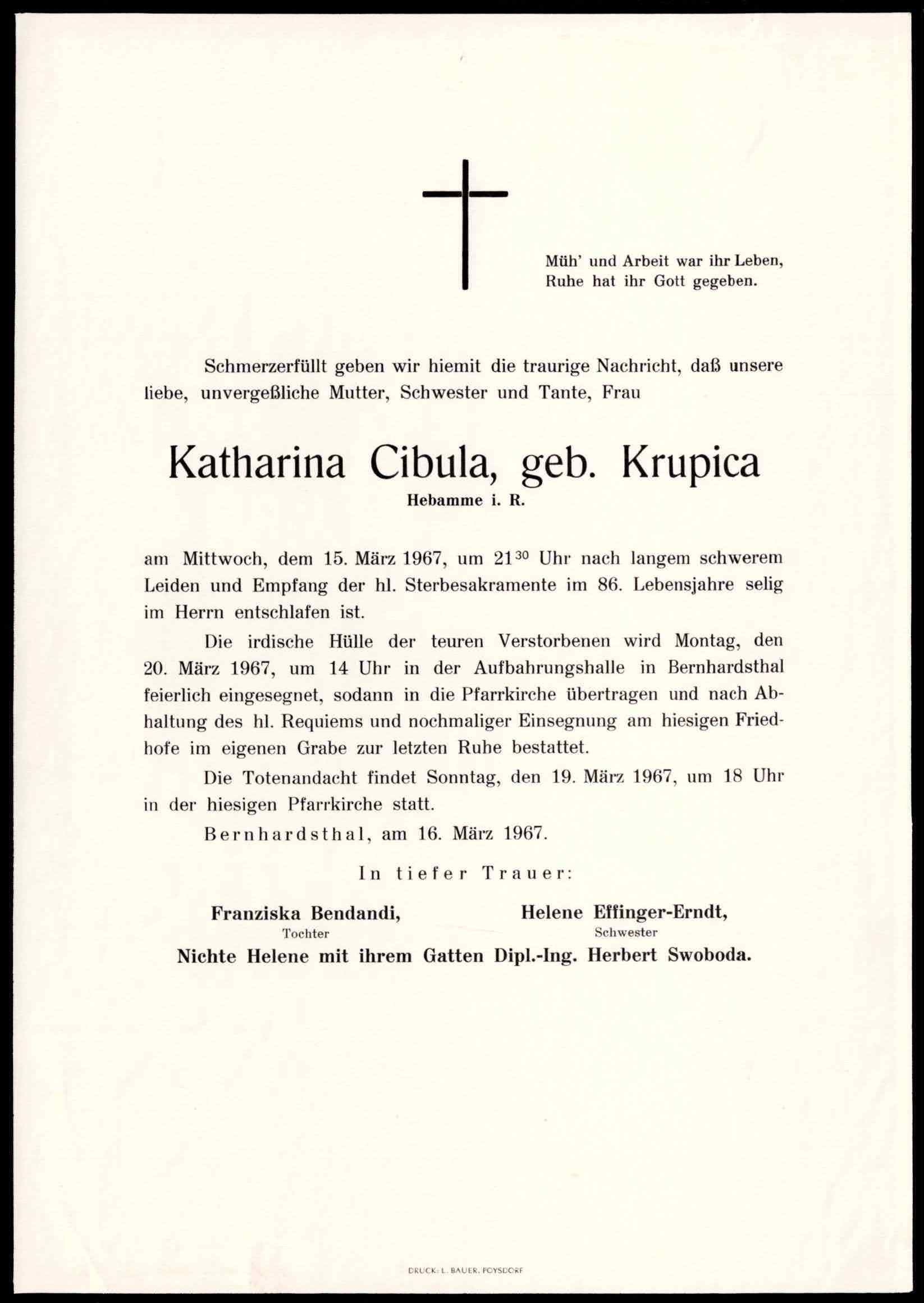 21 Müller Leopoldine (Scheibenhofer) Bernhardsthal - ~*1889 +01.08.1967 |