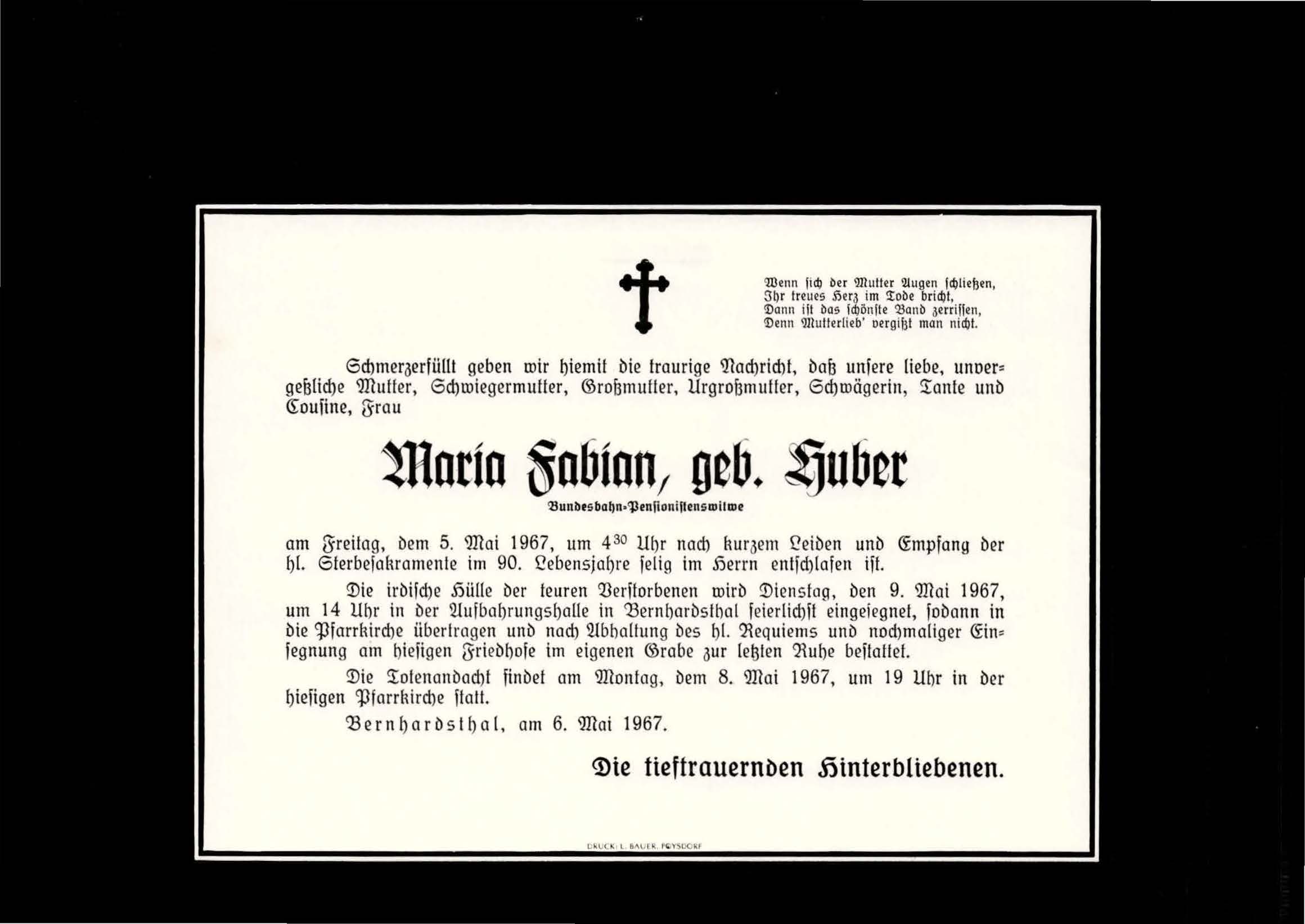13 Fabian Maria (Huber) Kellergasse 143 - ~*1877 +05.05.1967 |