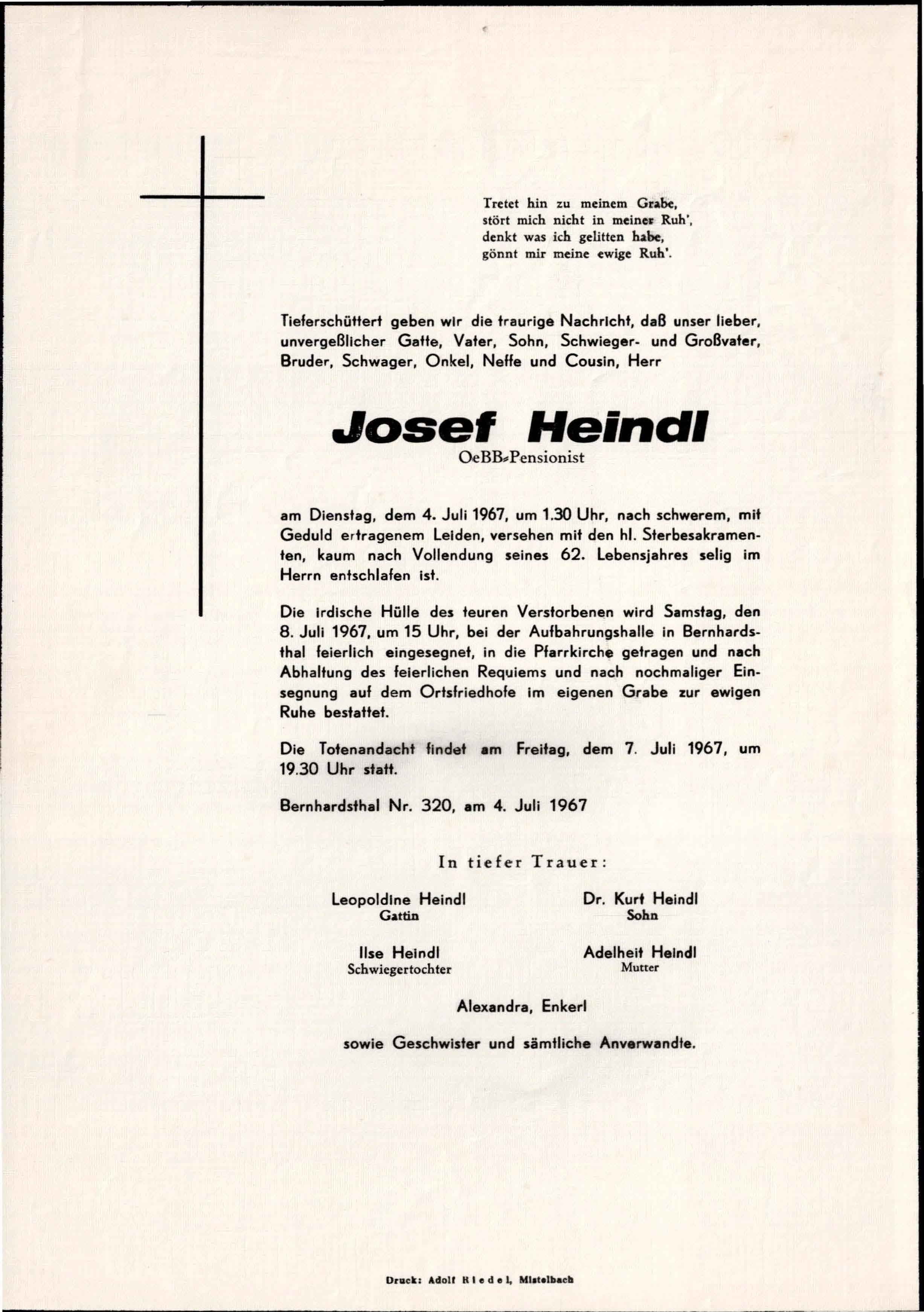18 Heindl Josef Bahnstraße 320 - ~*1905 +04.07.1967 |