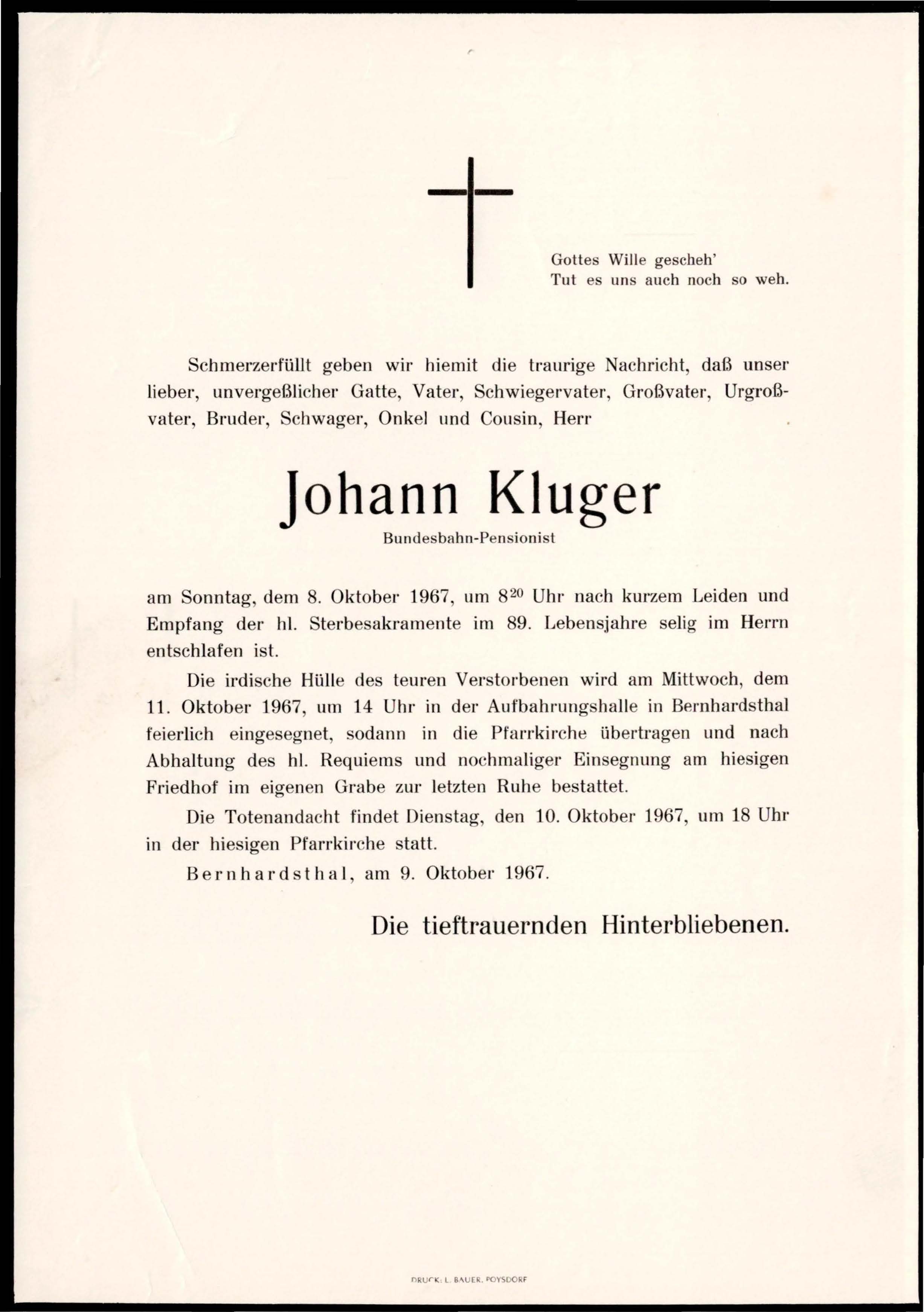 22 Kluger Johann Friedhofstraße 366 - ~*1879 +08.10.1967 |
