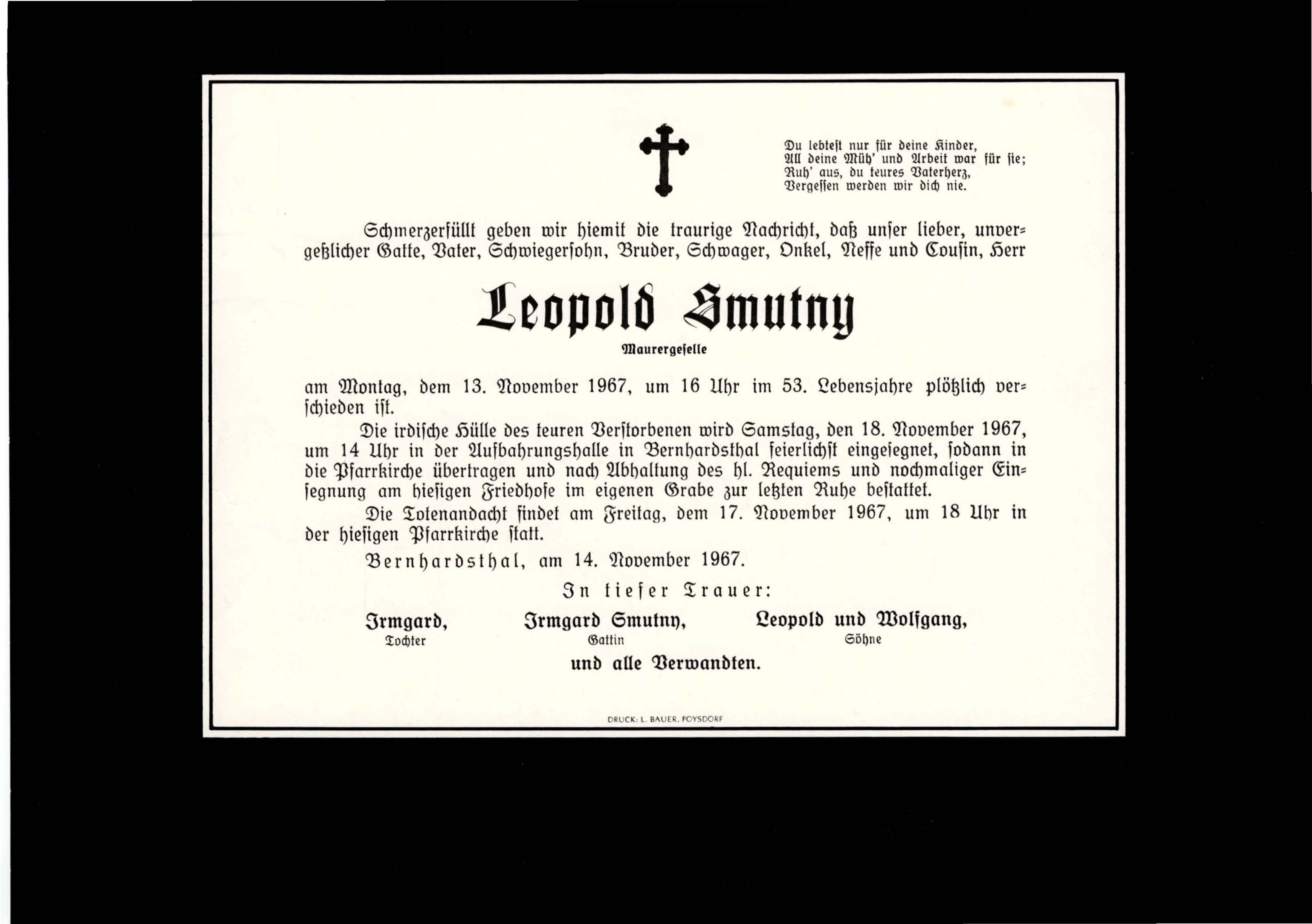 24 Smutny Leopold Obere Teichstraße 396 - ~*1914 +13.11.1967 |
