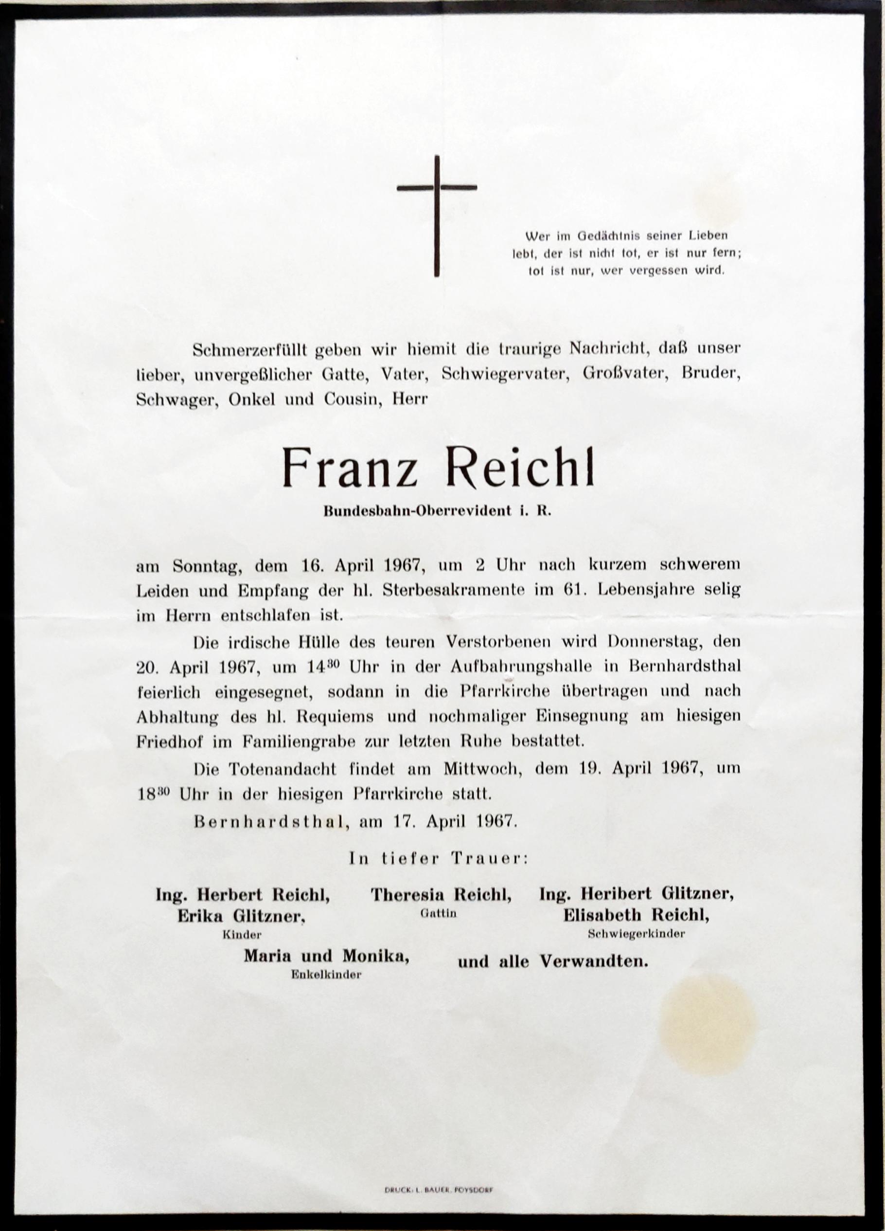 11 Reichl Franz Teichstraße 205 - ~*1906 +16.04.1967 |