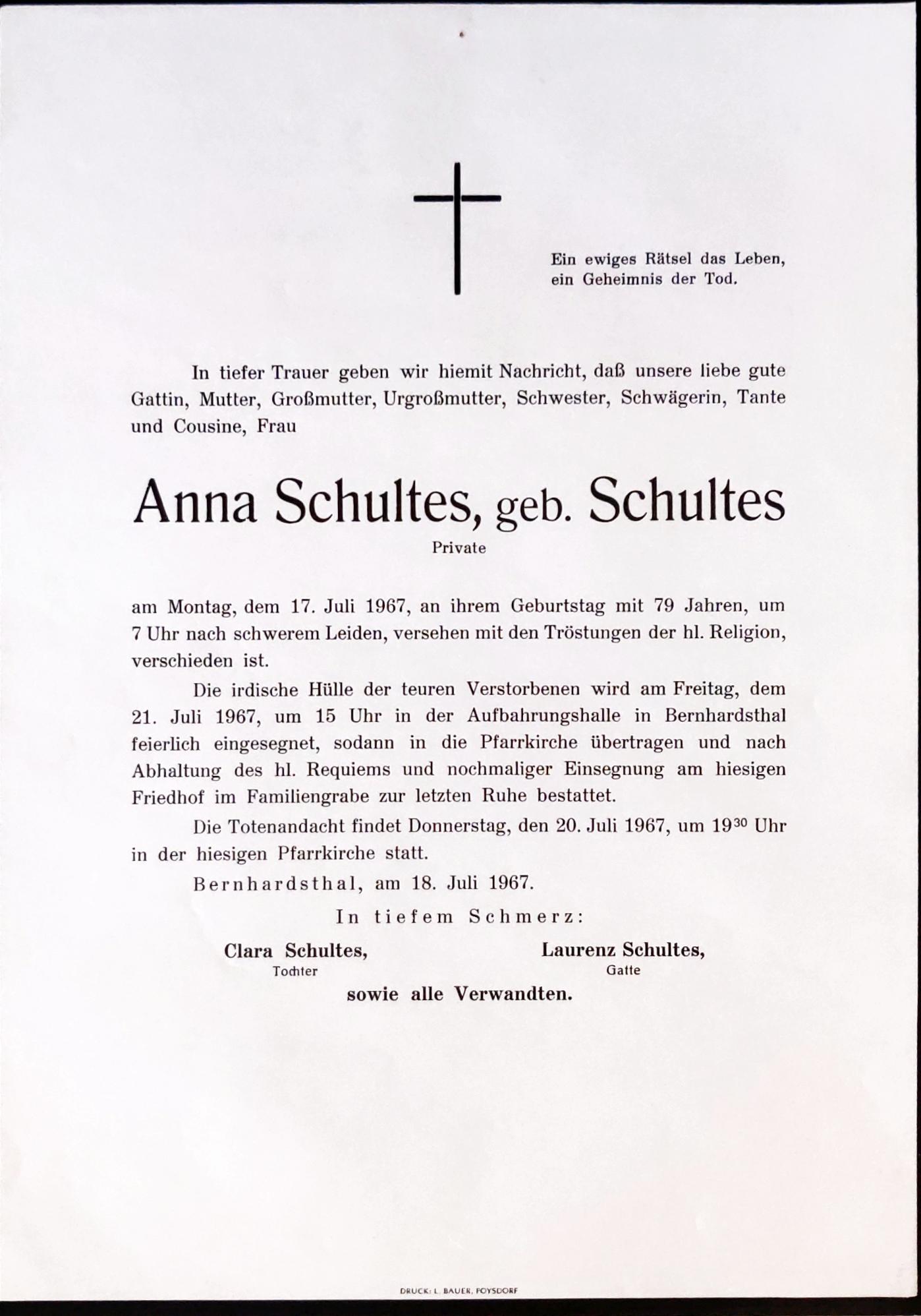 20 Schultes Anna (Schultes) Friedhofstraße 336 - ~*1888 +17.07.1967 |