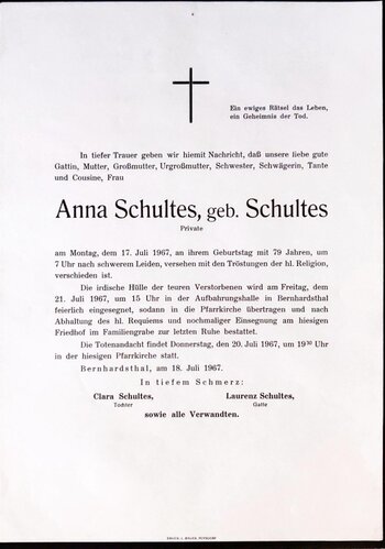 19 Kelnner Johanna (Helmer) Bernhardsthal - ~*1891 +17.07.1967 |
