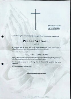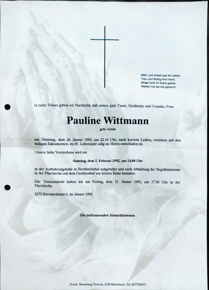 1 Wittmann Pauline (Grois) Hauptstraße 6 - ~*1907 +28.01.1992 |