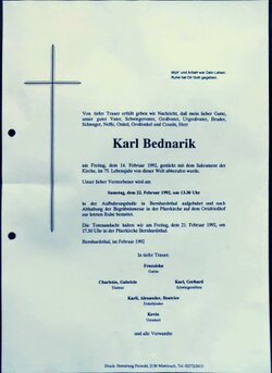 Bednarik Karl Mühlbergstraße 150 - ~*1917 +14.02.1992 |