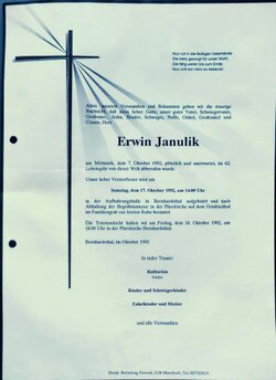 Janulik Erwin Am Schloßberg 50 - ~*1931 +07.10.1992 |