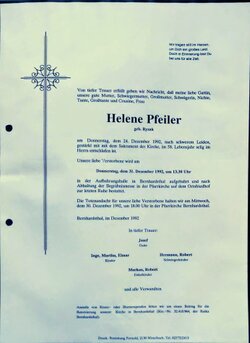 Pfeiler Helene (Ryzak) Am Schloßberg 51 - ~*1935 +24.12.1992 |