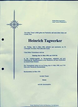 Tagwerker Heinrich Hintausstraße 285 - ~*1939 +06.03.1992 |